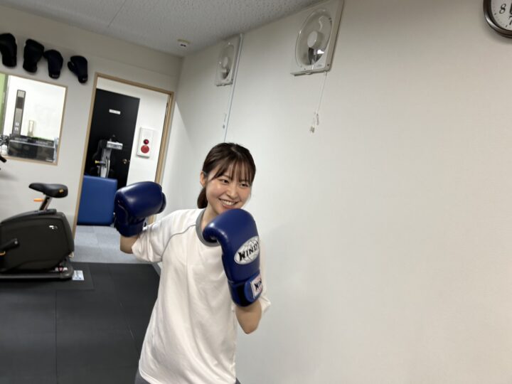 ボクシングのミット打ちをして、さらに心拍数を上昇させて、しっかり汗をかく運動をします。