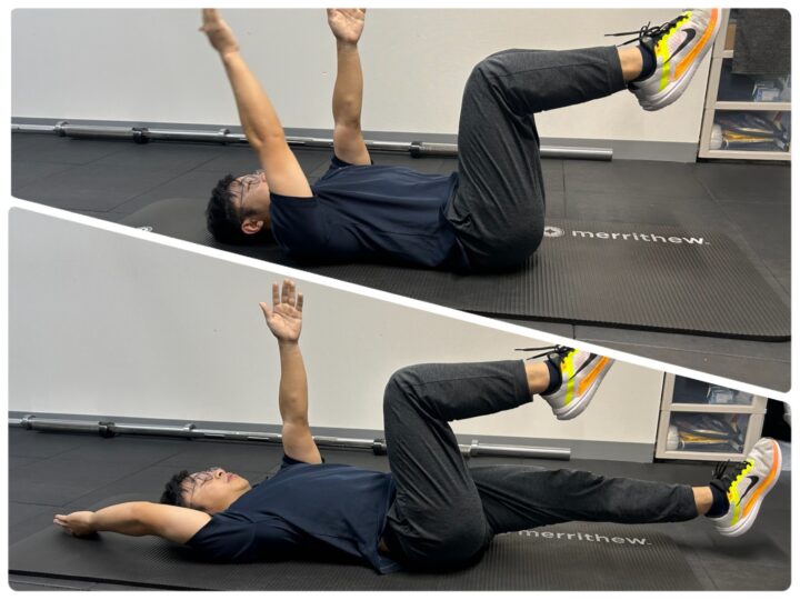 aLLパーソナルジム清澄白河では、自宅用のトレーニングとしてレックレイズにツイストの動きを取り入れたトレーニング方法をオススメしております。レックレイズにツイストの動きを取り入れることにより、お腹の全部位(腹直筋・腹斜筋・腸腰筋・腹横筋)を効率よく鍛えることが出来ます。